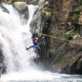 峡谷をロープやハーネスを使って下降する 興奮と躍動感満点のアドベンチャー! 圧倒されるような巨岩や滝口が見えない落差の大きな一条滝。そして登ることがで…